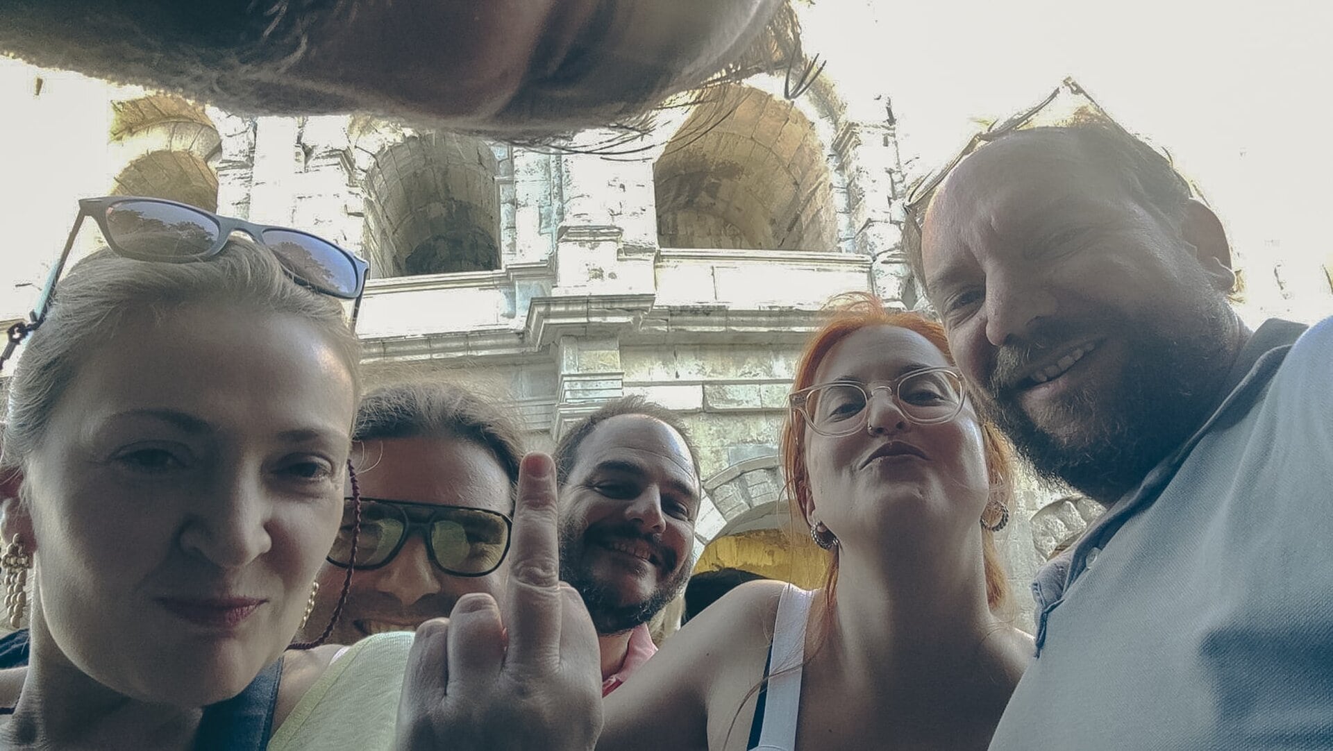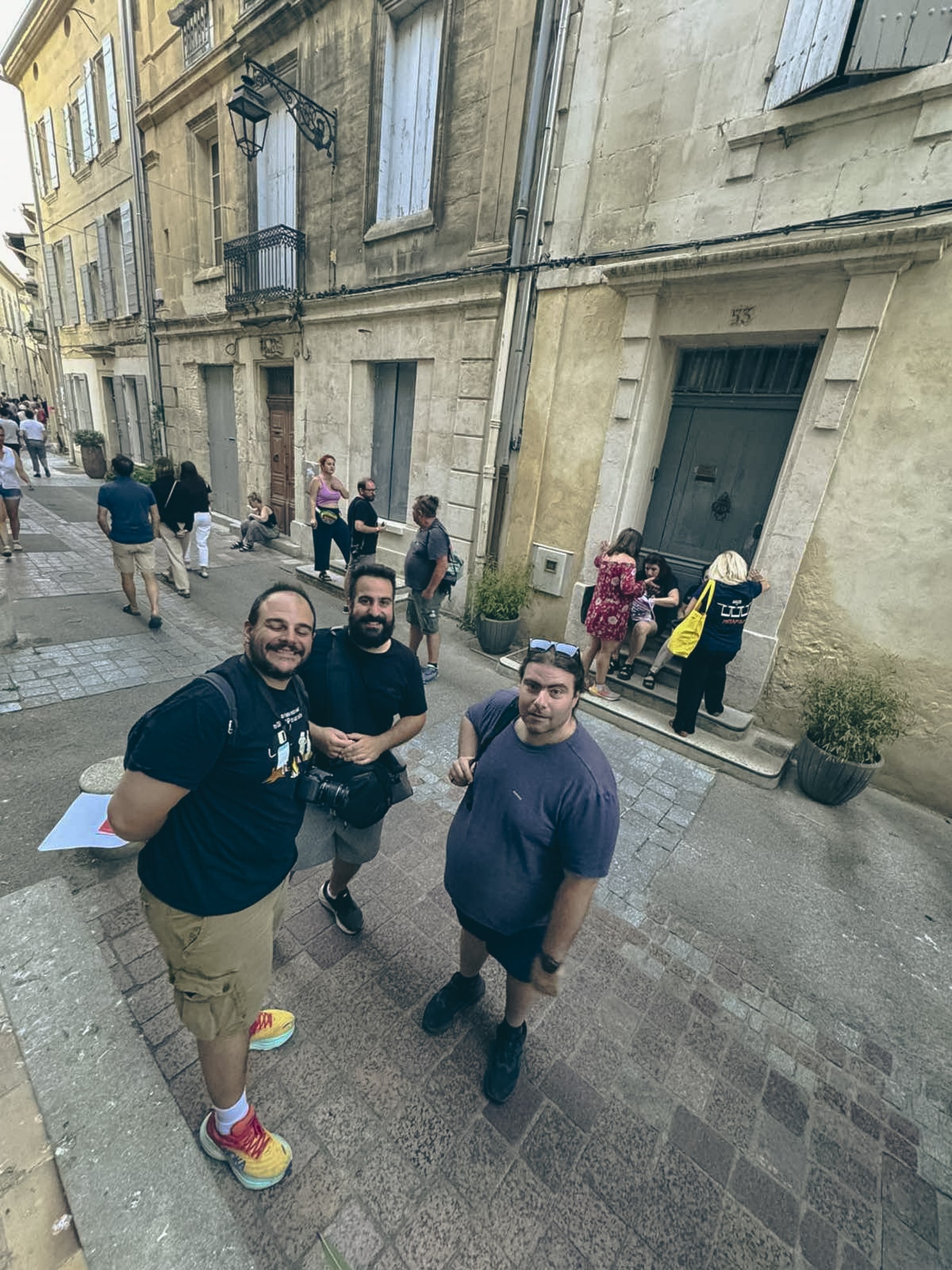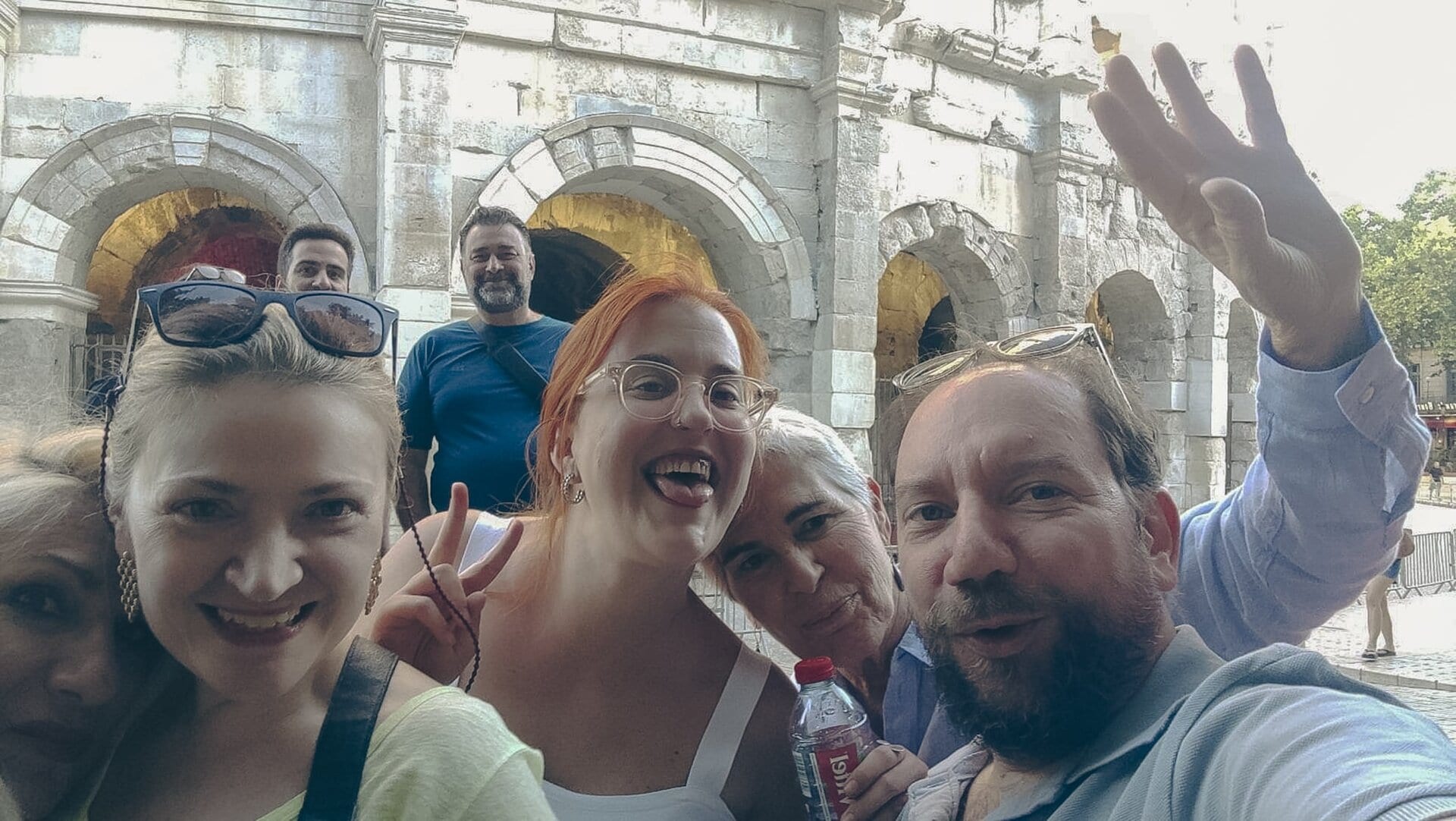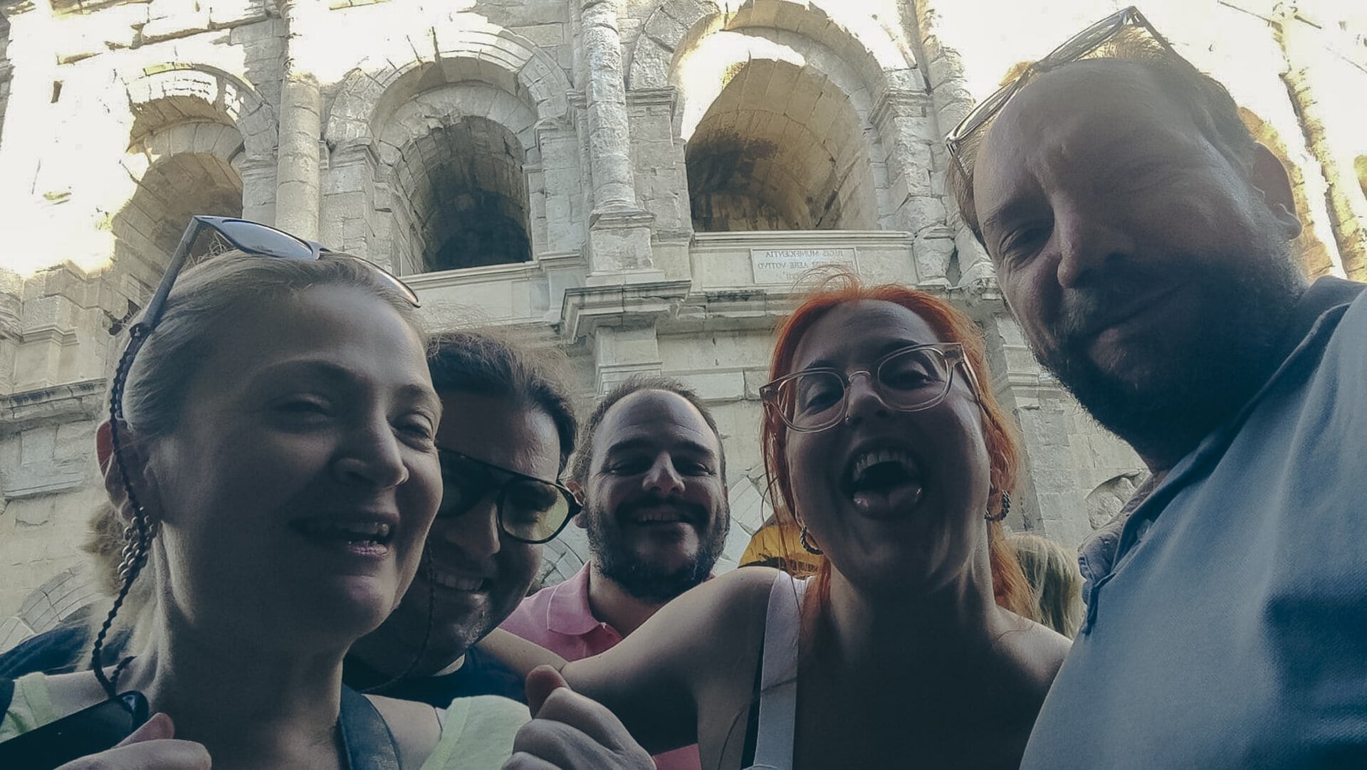 Κάθομαι σ’ ένα μικρό καφέ και γράφω, λίγα βήματα από το Παλιό Αμφιθέατρο της Arles, και προσπαθώ να βάλω σε λέξεις όλα όσα ζήσαμε αυτές τις μέρες. Δεν είναι εύκολο. Γιατί αυτά τα ταξίδια δεν μετριούνται σε βήματα ή χιλιόμετρα, αλλά σε βλέμματα, συγκινήσεις, εικόνες και αθόρυβες καλημέρες με φόντο τις γειτονιές της Marseille, τις αυλές της Avignon, τις πέτρινες σκιές της Nîmes. ( Πάλι κάναμε 20 χιλιόμετρα την ημέρα και κάψαμε μισό αγγούρι…)