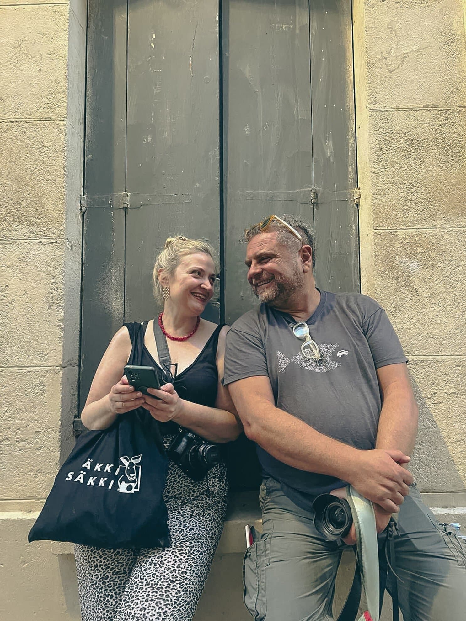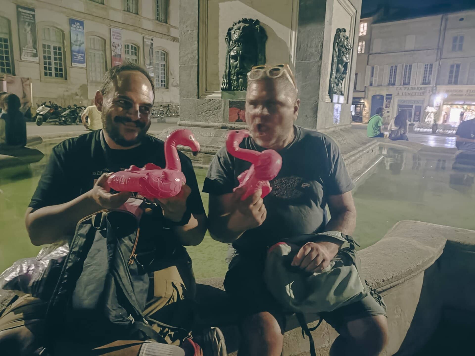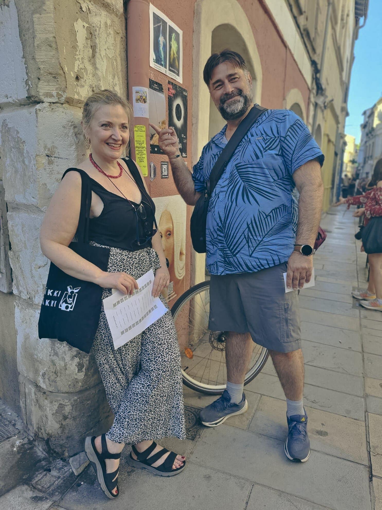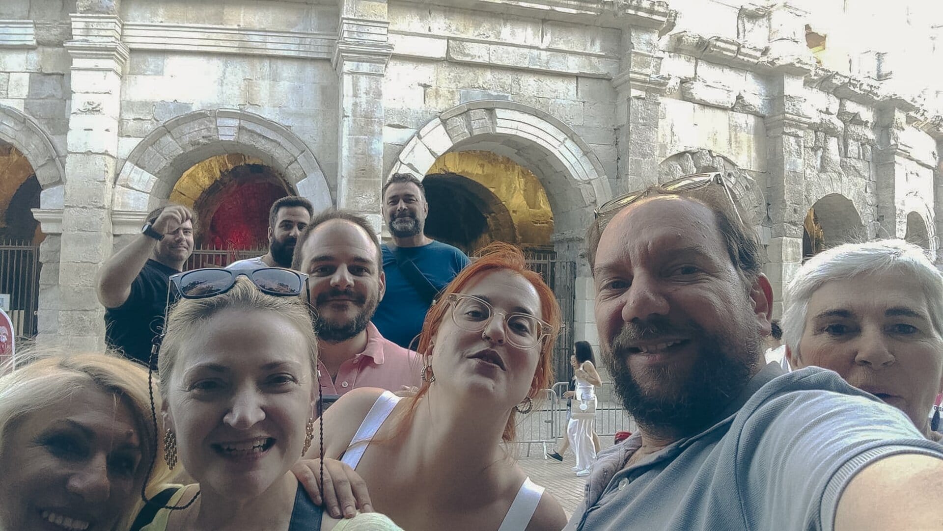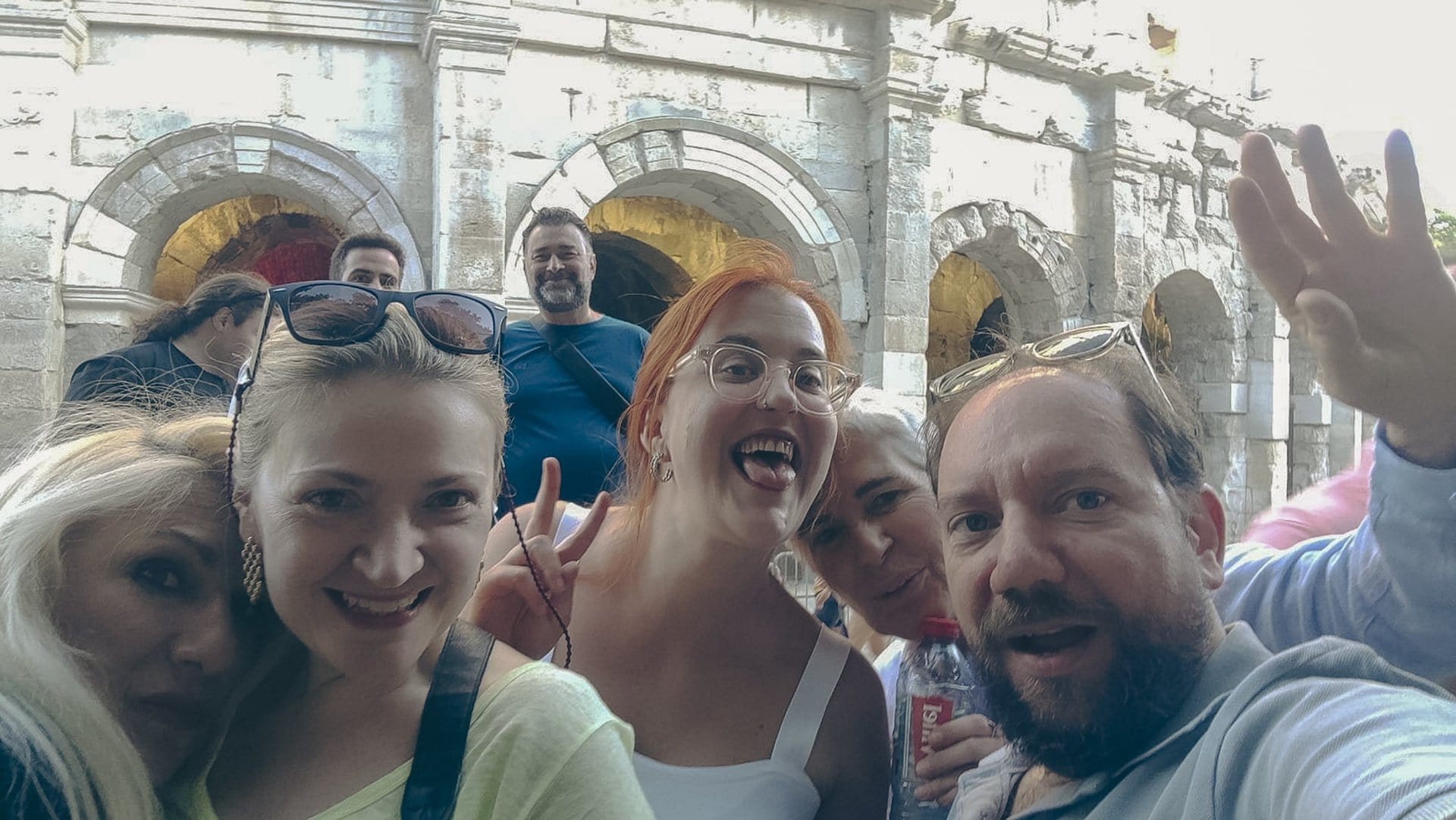 Κάθομαι σ’ ένα μικρό καφέ και γράφω, λίγα βήματα από το Παλιό Αμφιθέατρο της Arles, και προσπαθώ να βάλω σε λέξεις όλα όσα ζήσαμε αυτές τις μέρες. Δεν είναι εύκολο. Γιατί αυτά τα ταξίδια δεν μετριούνται σε βήματα ή χιλιόμετρα, αλλά σε βλέμματα, συγκινήσεις, εικόνες και αθόρυβες καλημέρες με φόντο τις γειτονιές της Marseille, τις αυλές της Avignon, τις πέτρινες σκιές της Nîmes. ( Πάλι κάναμε 20 χιλιόμετρα την ημέρα και κάψαμε μισό αγγούρι…)